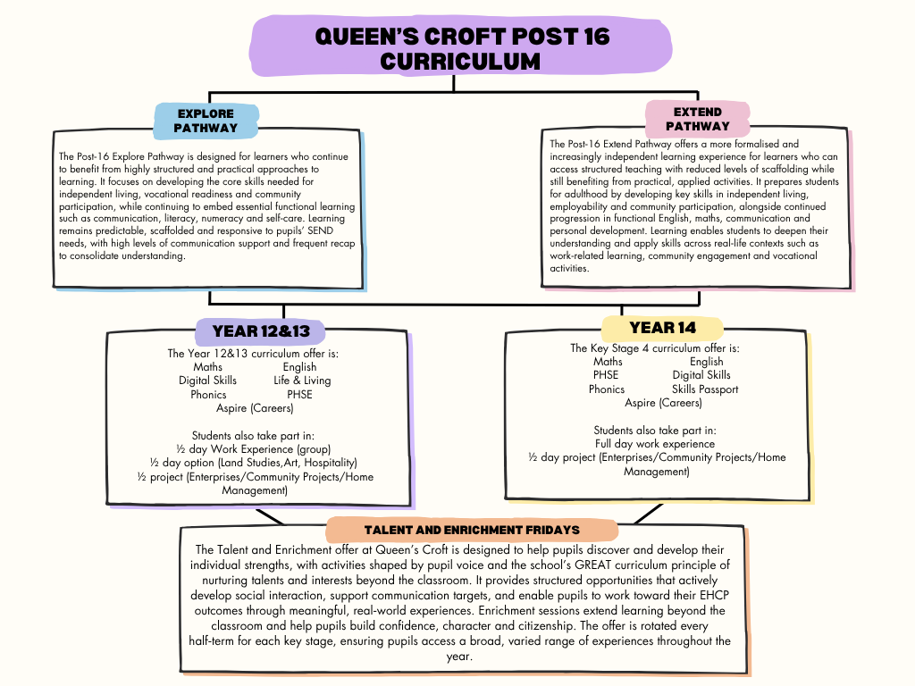 In Post-16, pupils study a curriculum designed to support independence, employability and preparation for adulthood.